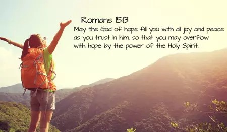 “May the God of hope fill you with all joy and peace as you trust in him, so that you may overflow with hope by the power of the Holy Spirit.” Romans 15:13